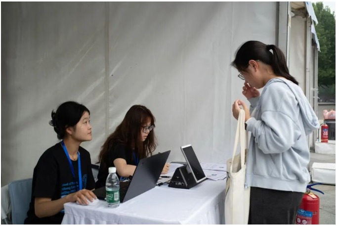 在志愿者的引导下,新生完成注册报到,领取启航礼包,参与答题游戏,解锁独属于你的报到记忆。