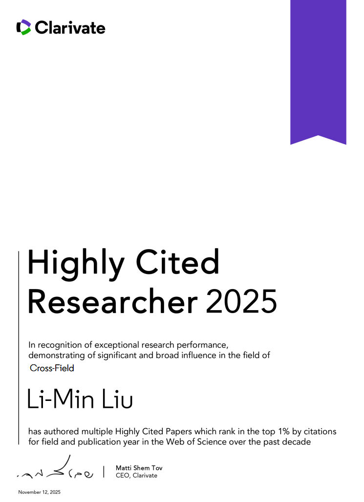 近日科睿唯安(Clarivate)发布2025年度“全球高被引科学家”名单,太阳集团tyc5997刘利民教授上榜交叉学科领域榜单。该榜单遴选标准聚焦科学家研究成果的全球影响力和学科交叉创新性,本年度共吸引来自60个国家/地区的1300余家顶尖学府及科研机构、6868位科学家(7131人次)角逐,彰显全球科研竞争新格局。